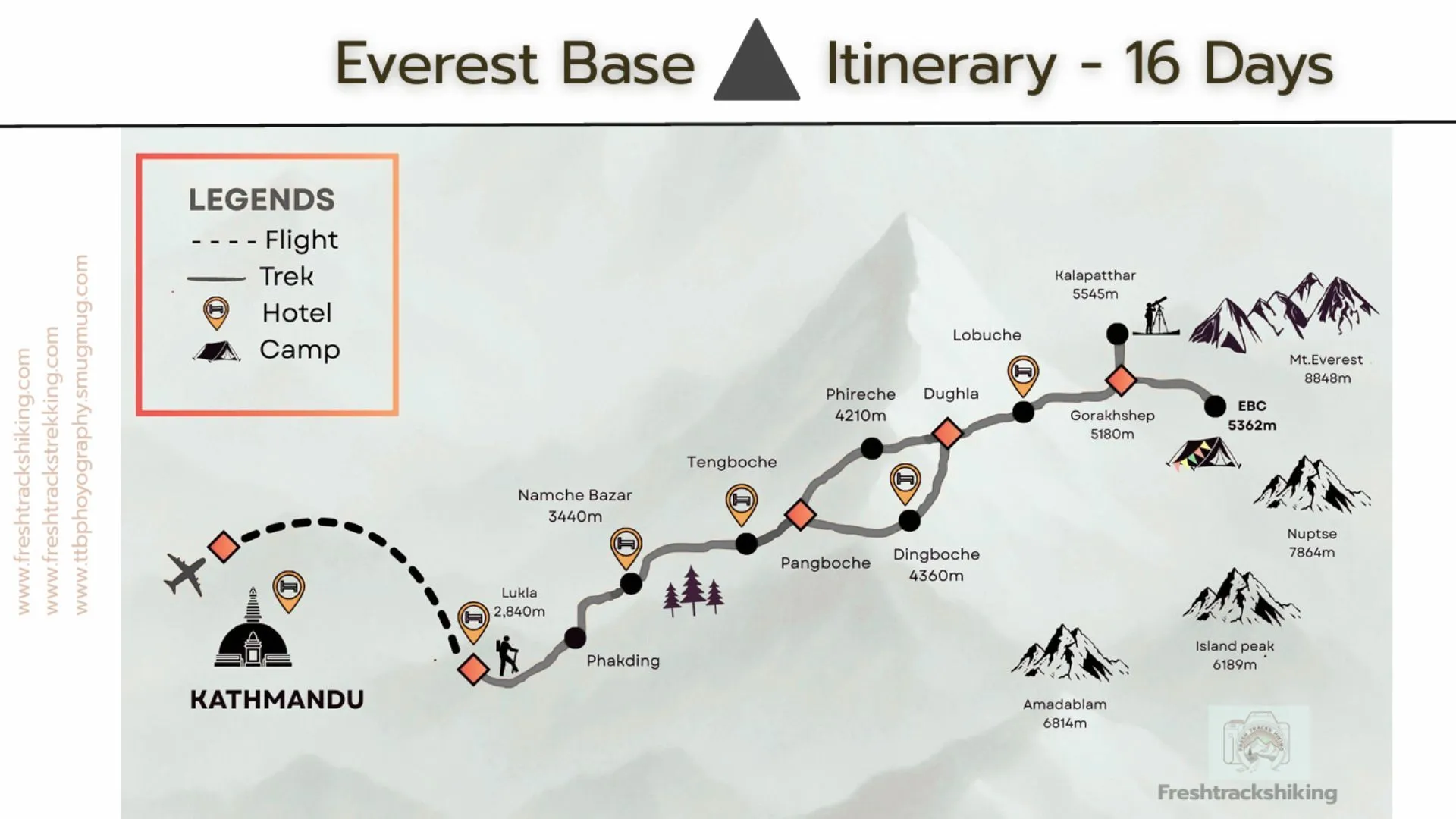 2 nights in a four starhotel in Kathmandu, 12 nights in teahouses on the trail